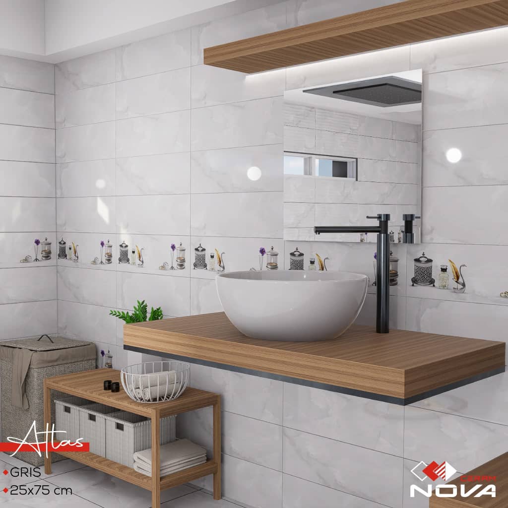 Faïence Atlas Gris -25×75 cm – motif mosaïque.