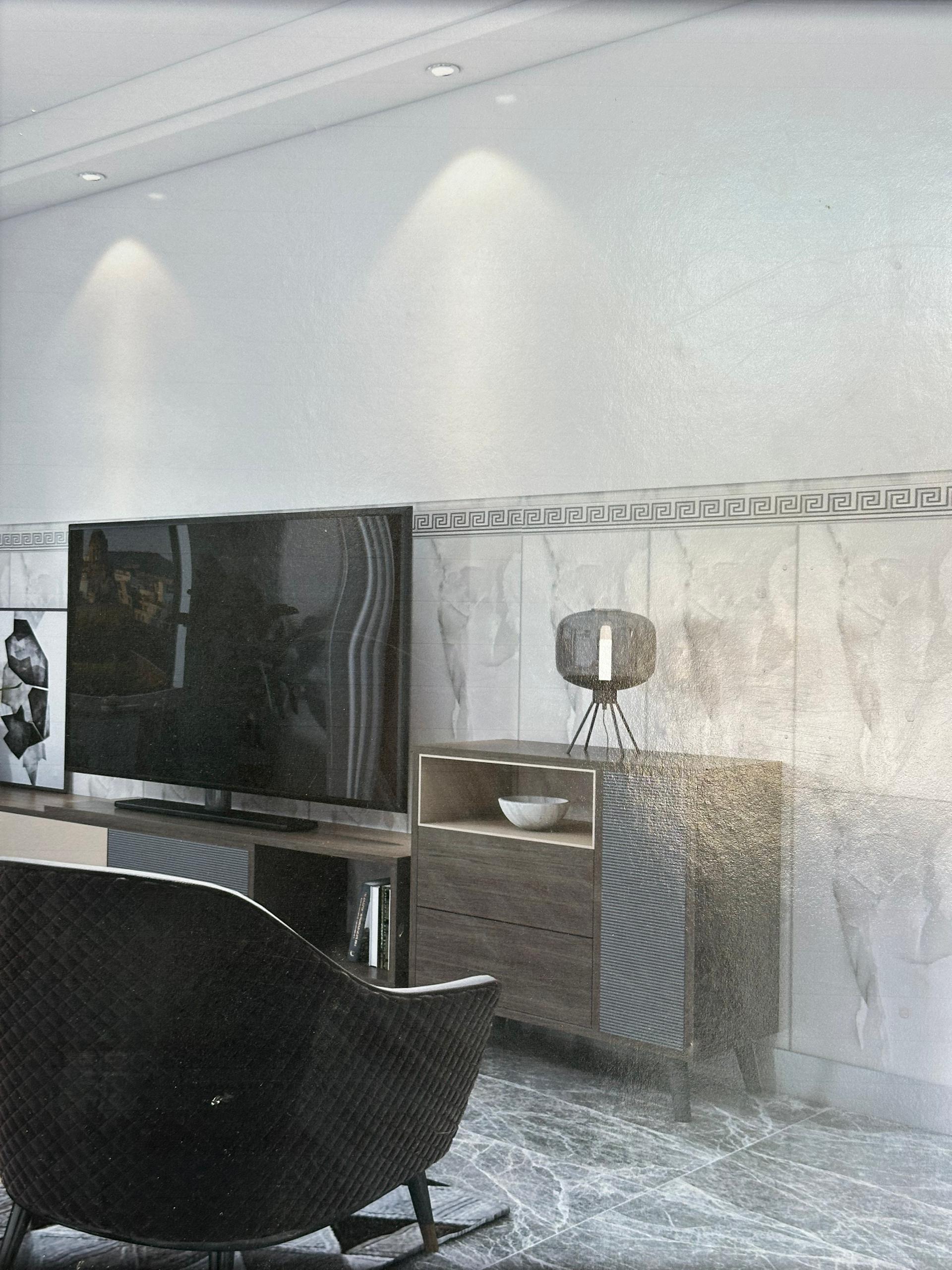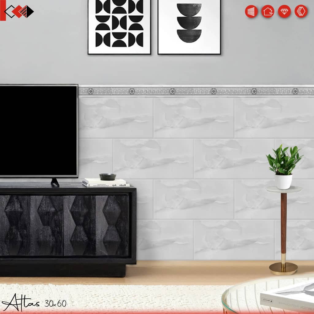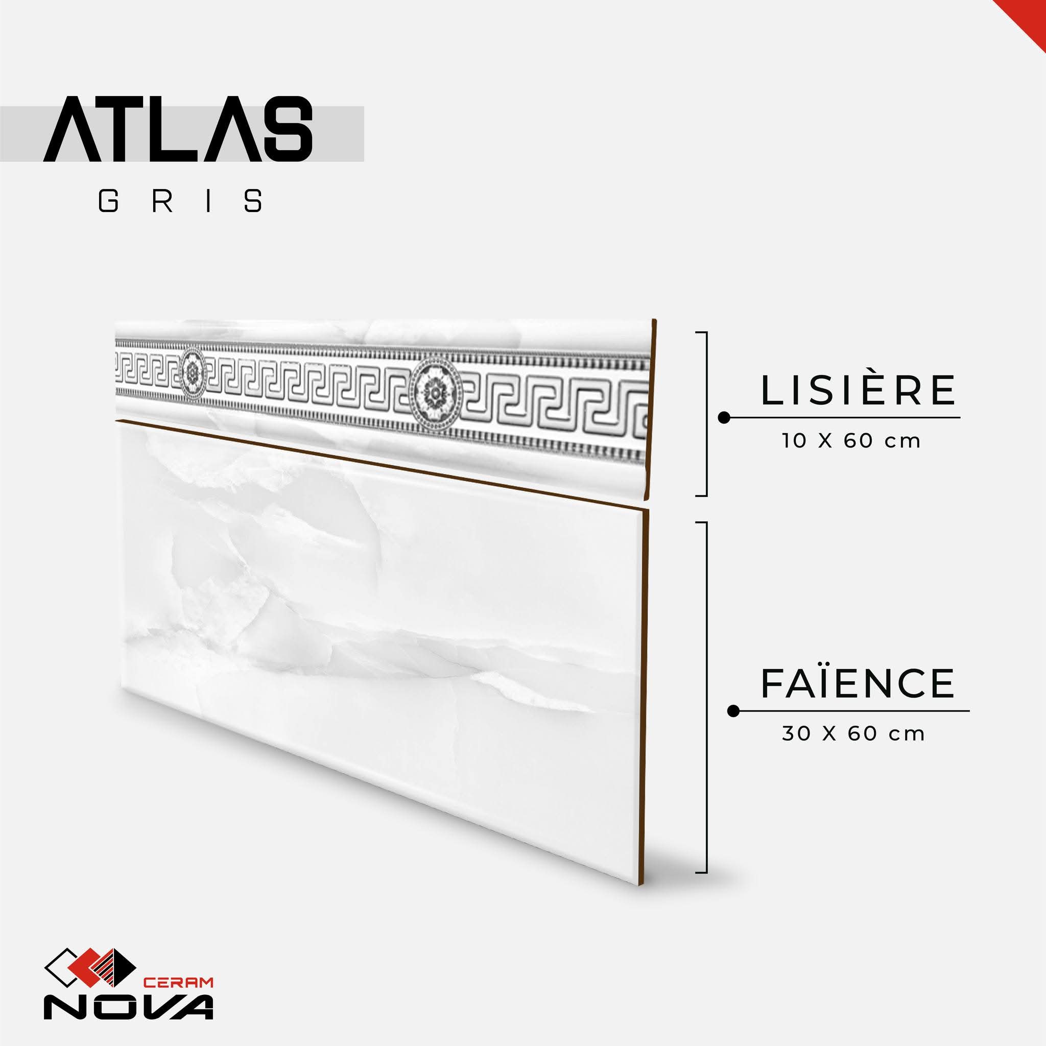 Faïence Atlas sous-bassement 30×60 cm-Gris marbré + lisière de 10x60cm.