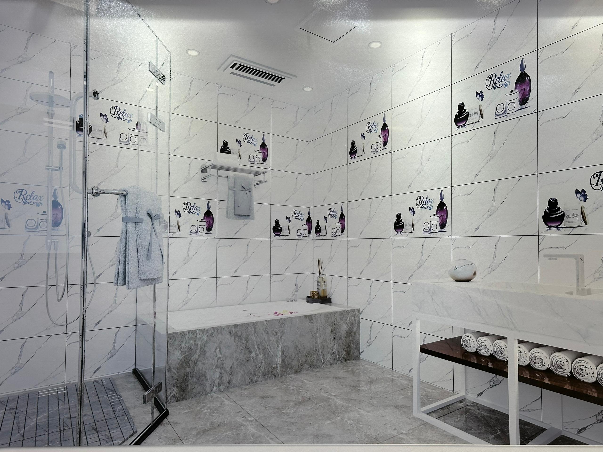 sa finition brillante agrandit les espaces , elle est idéal pour crée un mur propre et raffiné dans votre salle de bain .