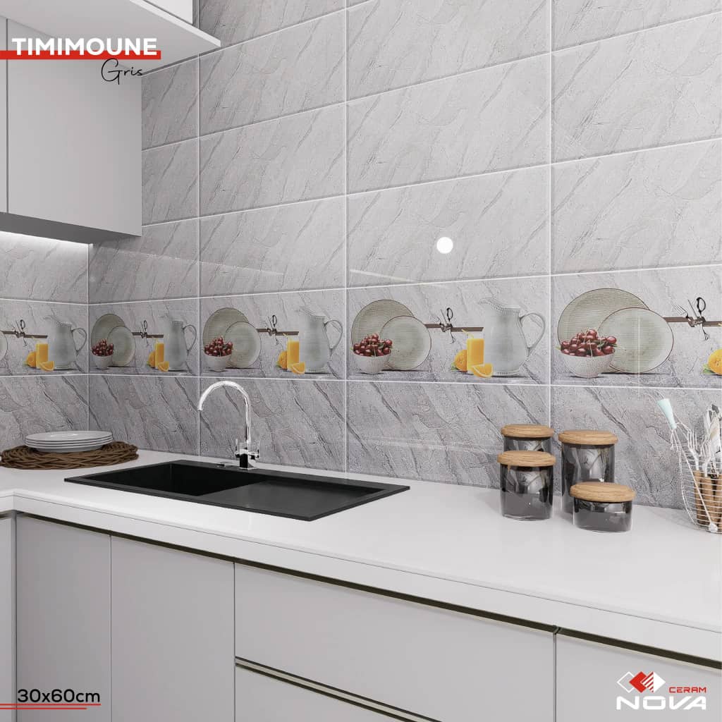 La faïence Cuisine .e Timimoune est un classique chic et intemporel , avec sont effet Gris Clair et fonce  discret , elle apporte lumière , propreté et élégance a vos mur